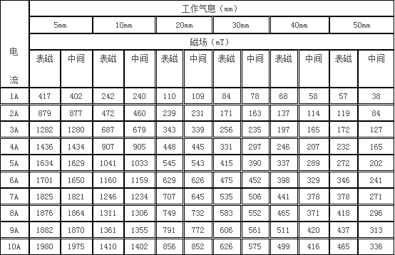 5、剩      磁:≤5mT  工作氣隙10mm時